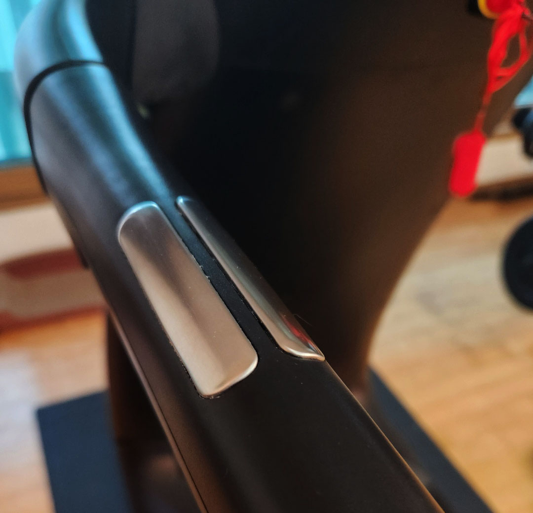 손잡이에 달린 부분은 스마트 메탈 센서라고 하는데 달리면서 손을 잡아주면 심박수, 시간, 걸음수 소모된 칼로리를 계산해 보여줍니다.