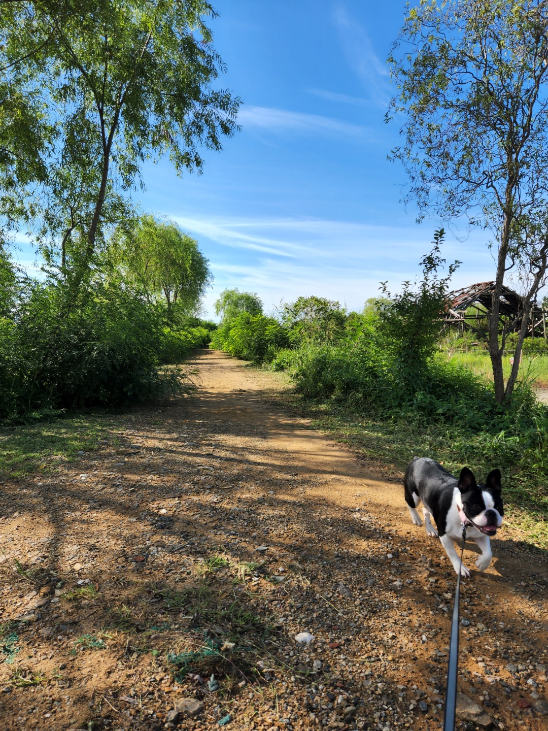 아스팔트 길에서 산책하다 흙을 밝으니 강아지도 신나하네요.