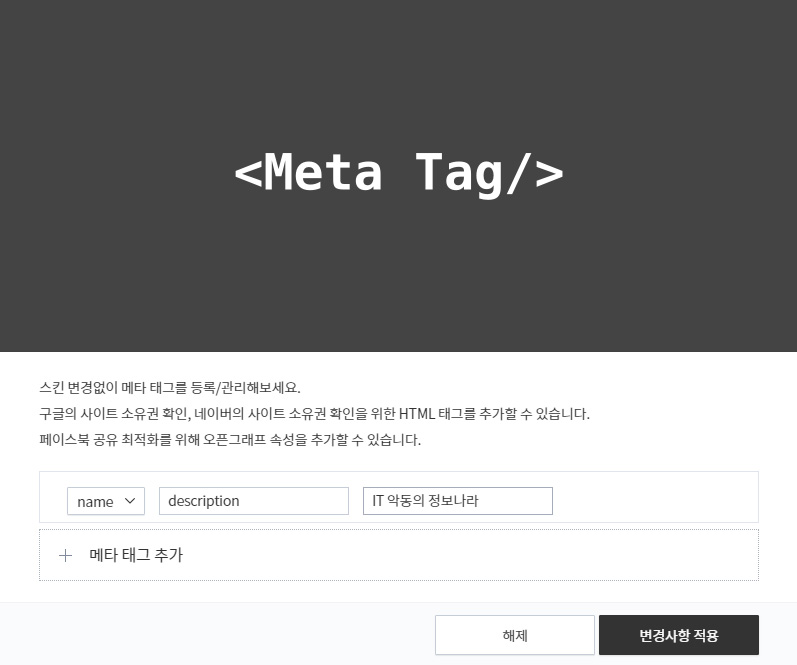 메타 태그는 보통 사이트내의 정보를 표기하도록 되어있음