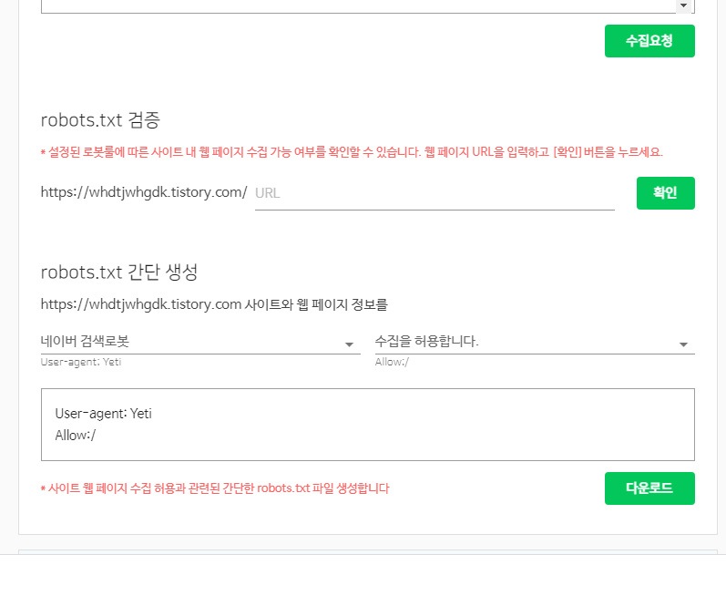 마지막 남은 로봇파일은 사이트 권한 설정같은건데 웹마스터 도구에서 다운로드가 가능함