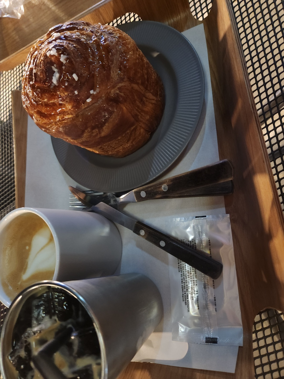 소금빵이 유명한 집이라고 하는데 다 떨어져서 저희는 라떼와 아아 몽블랑 이렇게 주문했어요. 맛은 그냥 평범했어요~ 좋지도 나쁘지도 않은 정도. 가격은 빵선생 자체가 비싼 건지 아니면 공원 근처라 그런 건지는 모르겠지만 대부분 메뉴가 저렴한 느낌은 없었습니다. 소금빵 먹으려면 더 이른 시간에 가야할 것 같네요!