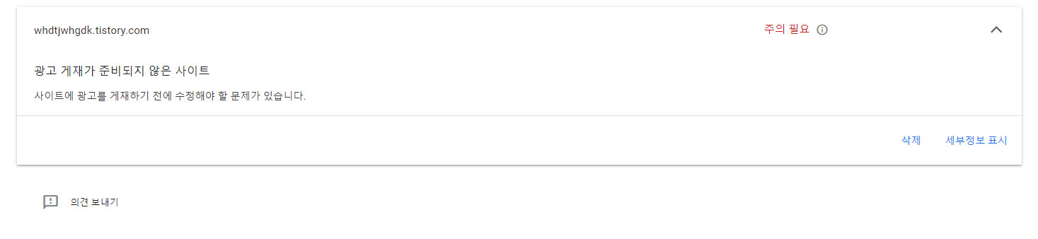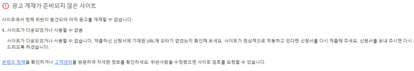 애드센스 신청 후 광고 게제가 준비되지 않은 사이트 ( 사이트가 다운되었거나 사용할 수 없음 )