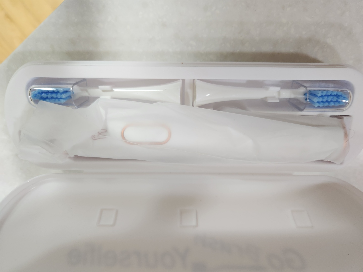 제품 구성은 기본 케이스 칫솔모 2개 본체 그리고 충전기 이렇게 포장되어 있어요.
