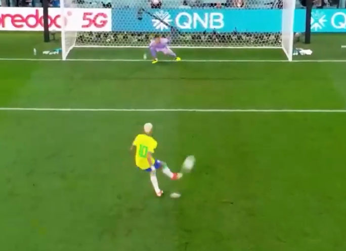 전반 13분 페널티킥 얻은 브라질 네이마르가 페널티킥을 득점에 연결하는 데 성공했습니다. 2:0